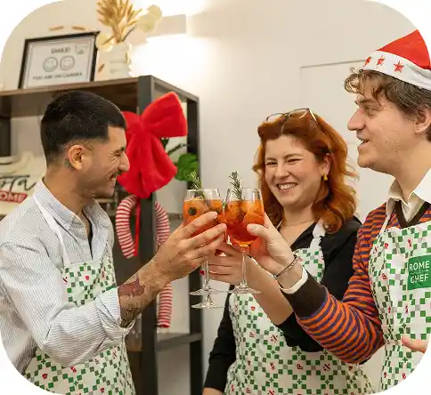 Merry Spritzmas! Join any class from December 1st to January 6th and enjoy a special festive twist. As the most unique pasta-making class in Rome, this experience blends timeless Italian traditions with several local drinks. Craft a special festive spritz, make delicious, homemade pasta, and live la dolce vita while celebrating holidays–the Italian way with a classic Christmas dessert. Spaces fill up fast, so book now, and get to cooking.